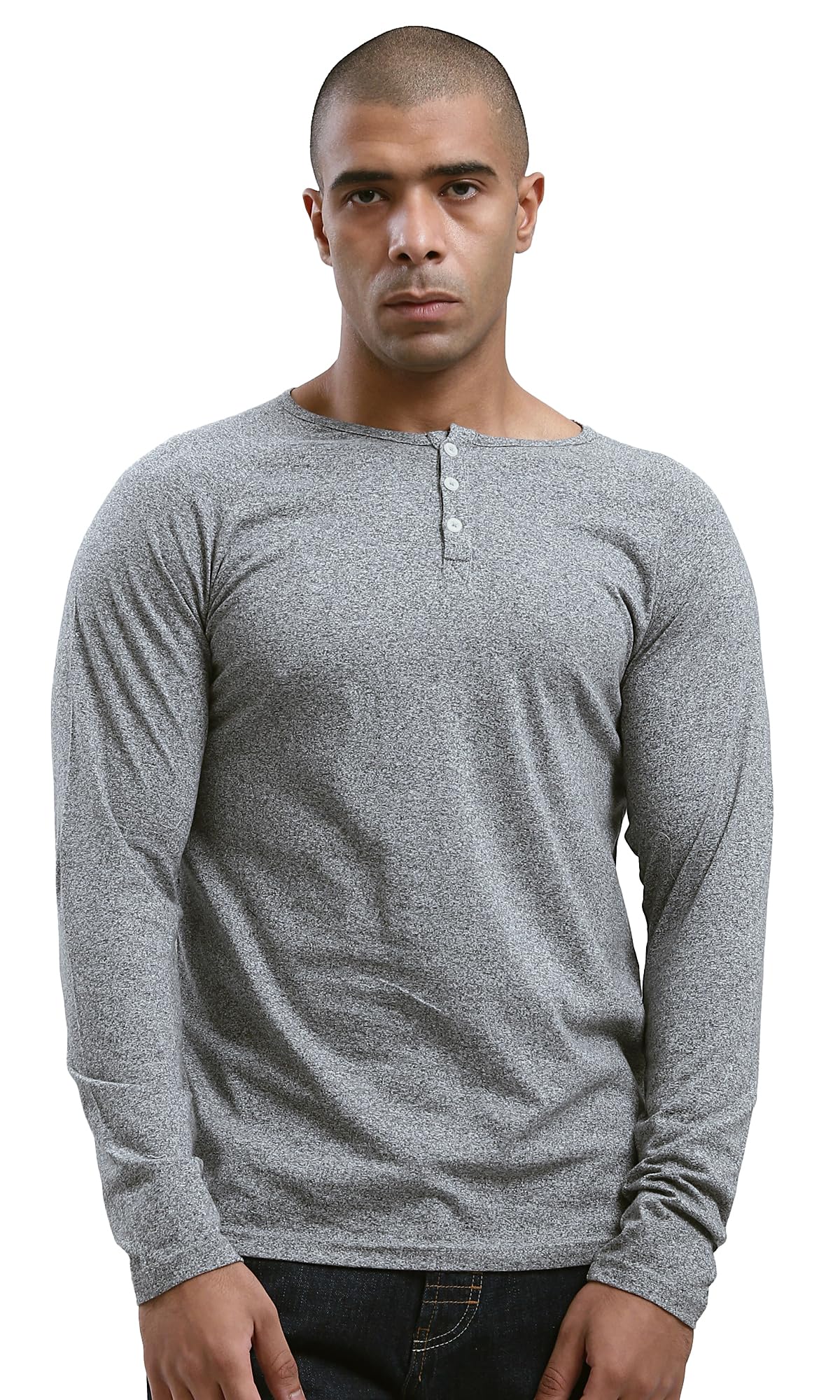 Ravin Mens Heather Grey Buttoned Summer Henley Shirt Modern (pack of 1)