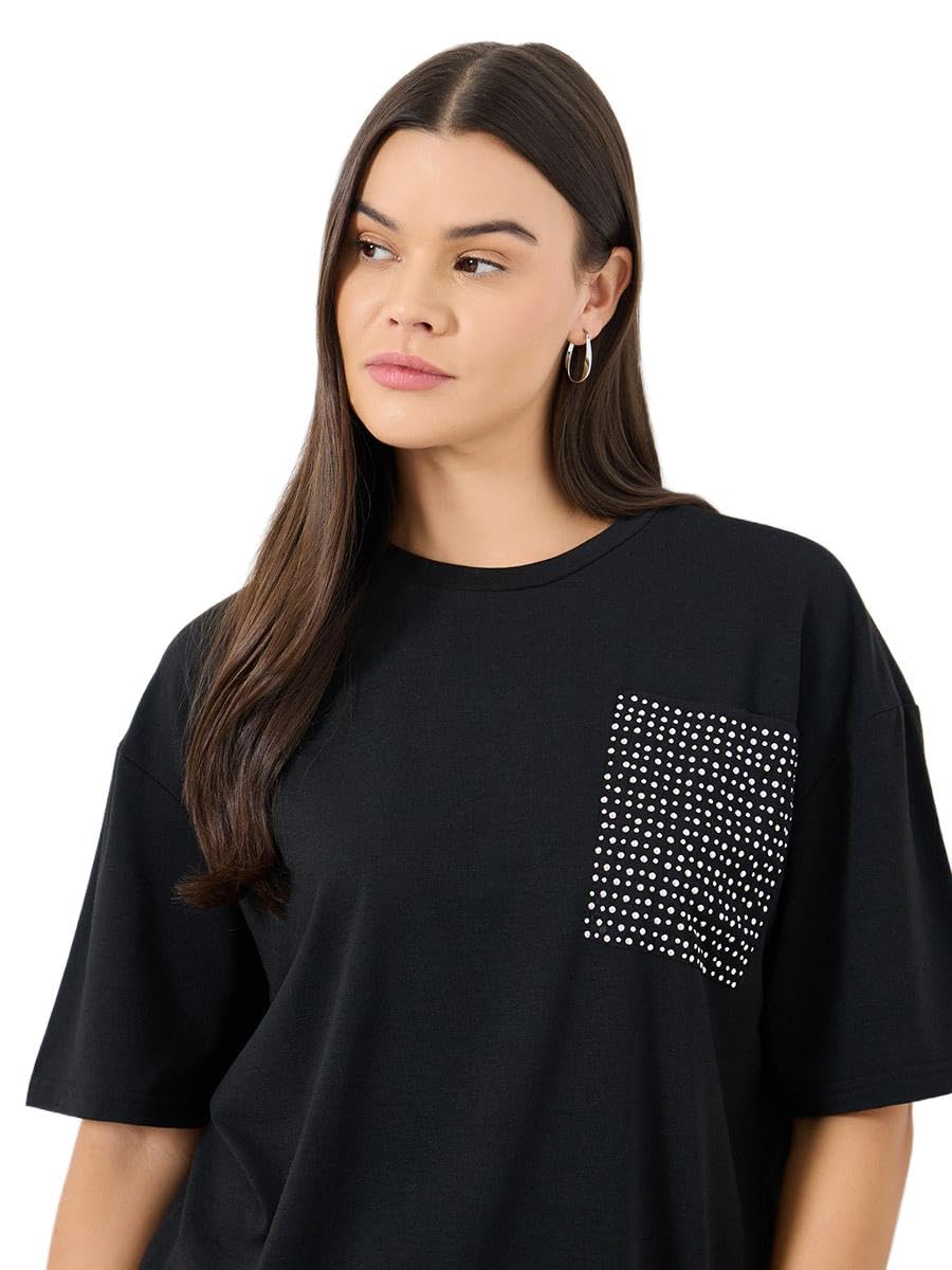 Styli Women Black Studded Pocket Oversized T-Shirt