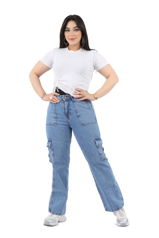 كمية Women's medum blue cargo jeans