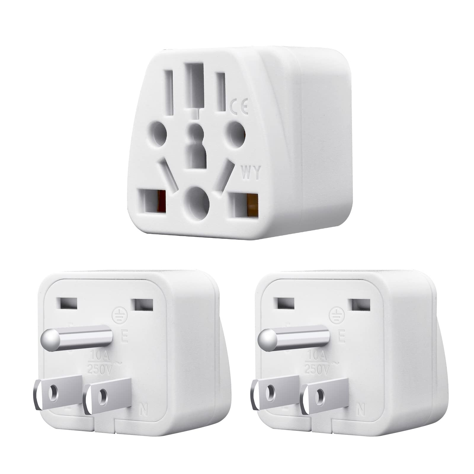 World to US Travel Adapter (3-Pack), White Universal 3-Prong Power Solution – Converts EU/JP/AU/UK/CN to US, Safe & Versatile Wall Charger for Smartphones, Laptops & More – Stylish Design